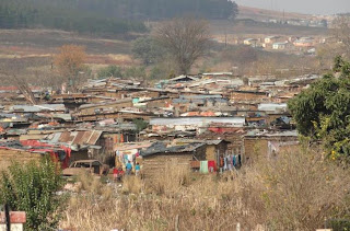 In Greytown zien we voor het eerst een echte sloppenwijk aan de rand van de stad. Van bovenaf gezien lijkt het een lappendeken van aaneen geplakte stukjes golfplaat. De krotten zijn klein, en staan zo dicht op elkaar dat je er amper tussendoor kunt lopen. Bij het zien van deze krotten, is een township een villawijk.